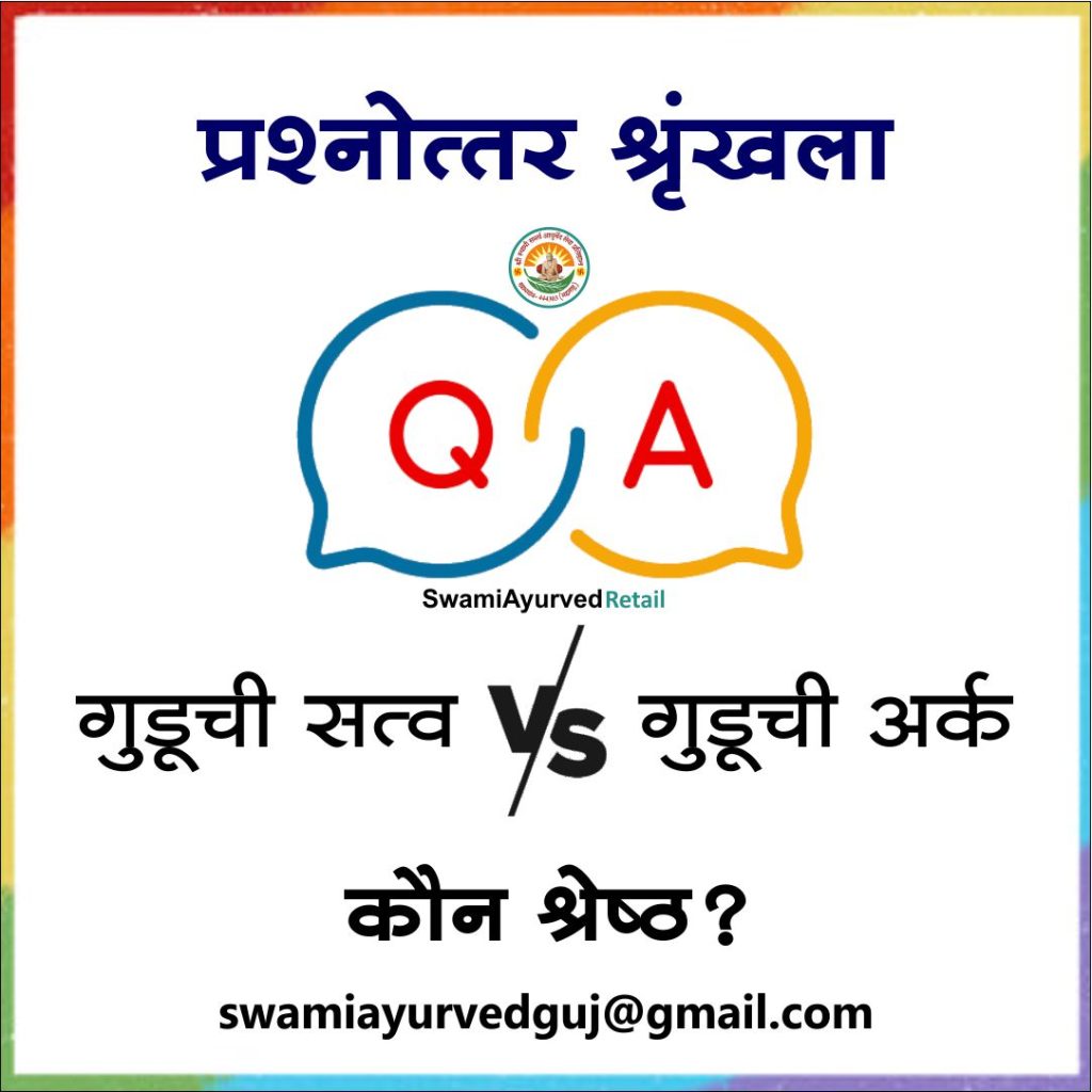 प्रश्न : स्वामीआयुर्वेद गुडूची सत्व और गुडूची अर्क ऐसे आपके दो प्रोडक्ट्स है, इसमें से कौनसा श्रेष्ठ है...