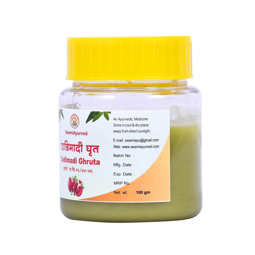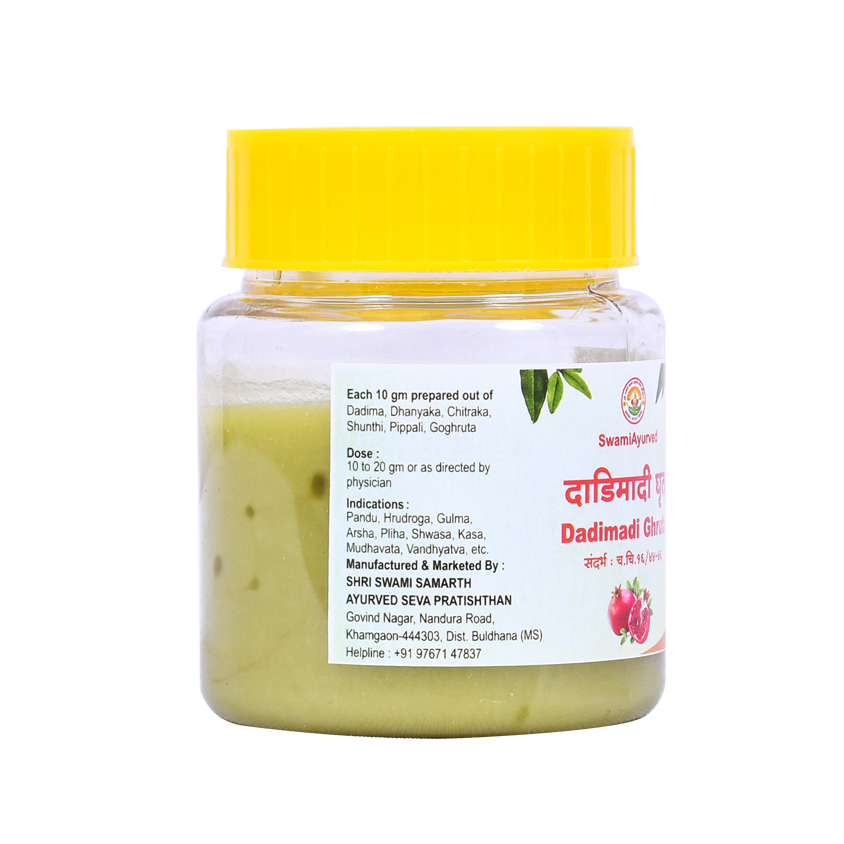 Dadimadi Ghruta is a classical formulation referred in Charak Samhita Chikitsasthana. It is pillar in the management of Pandu Chikitsa. It is prepared out of Dadim beeja, Dhanyaka, Chitraka, Shunthi & Pippali. Very simple yet extremely effective combination it is. It is used in Pandu (All types of Blood dyscrasia), Hrudroga (Heart disease due to anaemia), Gulma (GIT Disorder), Arsha (Piles, Hemorrhoids’), Pleeha (Spleen disorders), Vataj & Kaphaja Diseases. Its best Agni Promoter, hence a preferred medicine in Agnimandya (Dyspepsia). It is also useful in Shwasa (Asthma), Kasa (Coughing). It works on Sarvadaihika Shukra, hence best in the management of degenerative disc disorders like arthritis, spondylitis and motor neuron disease like diseases.