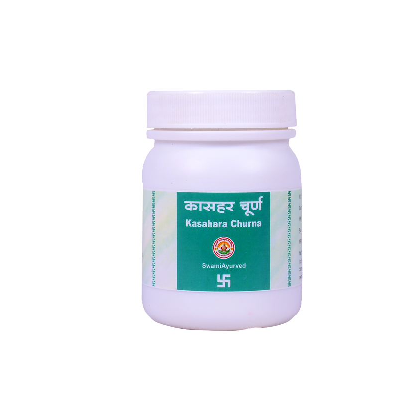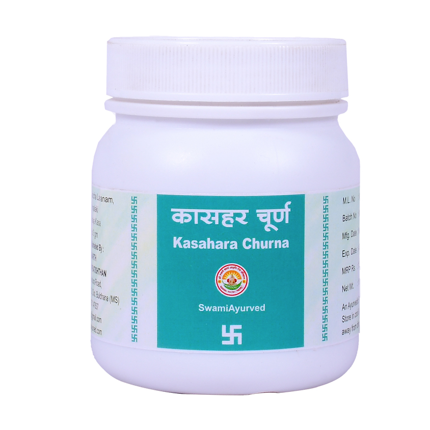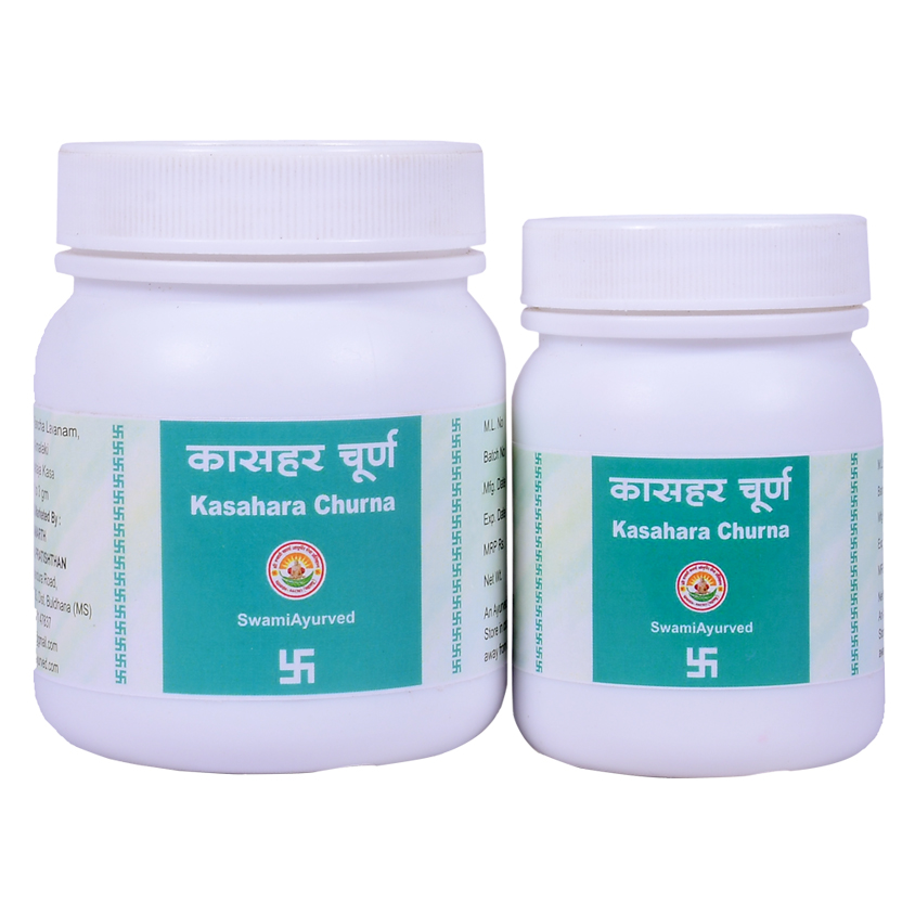 SwamiAyurved Kasahara Churna ( कासहर चूर्ण ) is a proprietary product of Shri Swami Samarth Ayurved Seva Pratishthan i.e. SwamiAyurved. It is a polyherbal Ayurvedic formulation which contains Panchalavanam, Yashtimadhu & Amalaki as its ingredients. It is a best remedy for Vataj Kasa (Dry Cough) & Kaphaja Kasa (Productive Cough). Within 3 days, it gives significant relief from both types of Kasa. In both types of Kasa, it should be given with 20 ml Baheda Syrup & 10 ml of Sesame oil + 50 ml of hot Boiling water. Mix it thoroughly. Let it get warm and then take it. It can be given immediately after brush in the morning or after food at both time. In the morning after taking this Kasahara Churna, one should refrain from consuming anything for at least 1 and half hour. However it can also be taken with honey, if the above mentioned way could not be adopted due to busy schedule.