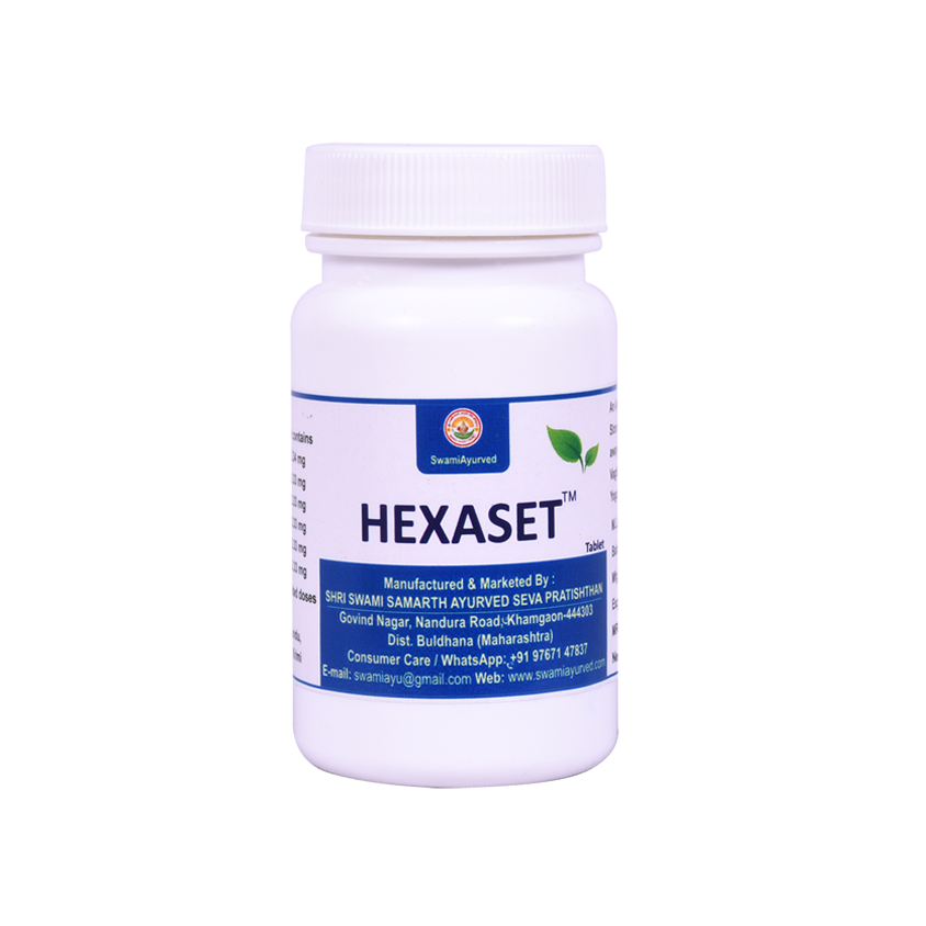 Hexaset Tablet is a classical Ayurvedic medicine. It is in fact, ShadadhranYoga cited by Acharya Vagbhata in the treatment of Kushtha& many other diseases. The name, Hexaset has been adopted to differentiate itself from classical Shadadharan Yoga.